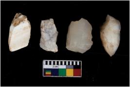 | Description / विवरण | There are n 4 utilized flake cores. Out of them two are made up of Chert and two are made up of Chalcedony. There are multi directional irregular scar pattern on them. Two have sharp edge and two are tapering at one end. |