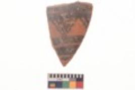 | Description / विवरण | Specimen of black on red ware with black decorative Intersecting curved lines forming triangular design geometric painting. |