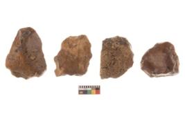 | Description / विवरण | There are n 4 utilized flakes. There are multi directional irregular scar pattern on both dorsal and ventral face of the flakes. Three have tapering at one end and one has sharp edge. |