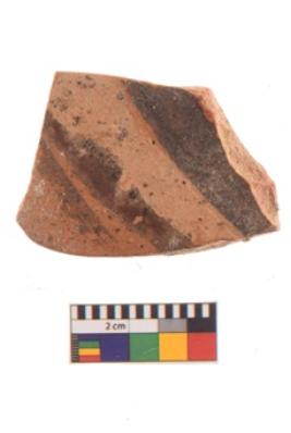 | Description / विवरण | Specimen of black on red ware with black decorative Parallel horizontal lines geometric painting. |