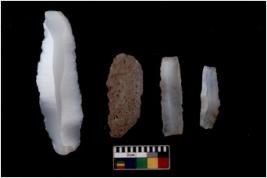 | Description / विवरण | There are n 4 Flake tool; There are multidirectional irregular scar pattern on them. few have blunt edges, Some of them are tapering at one end. |