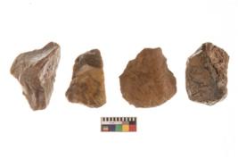 | Description / विवरण | There are n 4 utilized flakes. There are multi directional irregular scar pattern on both dorsal and ventral face of the flakes. One is blunt at one end and three have sharp edges. |