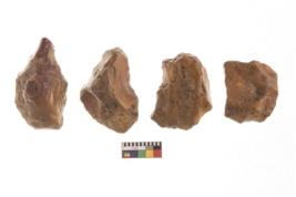 | Description / विवरण | There are n 4 utilized flakes. There are multi directional irregular scar pattern on both dorsal and ventral face of the flakes. Two have tapering at one end and two have sharp edges. |