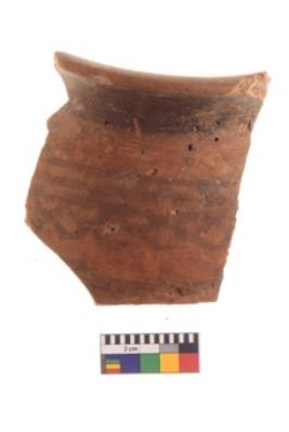 | Description / विवरण | Specimen of black on red ware with black decorative Parallel lines with joined cuves geometric painting. |