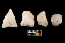 | Description / विवरण | There are n 4 flake cores. All of them are fully fluted flake cores without any trace of crested ridge flakes. |