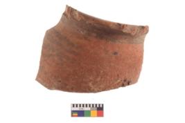 | Description / विवरण | Specimen of black on red ware with black decorative Horizontal parallel lines with wavy lines geometric painting. |