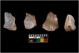 | Description / विवरण | There are n 4 utilized flake cores. There are multi directional irregular scar pattern on them. Two have sharp edges and two have round edges. |
