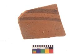 | Description / विवरण | Specimen of black on red ware with black decorative Horizontal parallel lines geometric painting. |