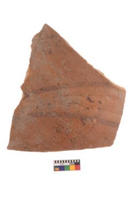 | Description / विवरण | Specimen of black on red ware with black decorative Parallel horizontal lines geometric painting. |