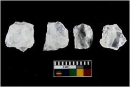 | Description / विवरण | Specimen of fluted cores having several broad fluted marks indicating the detached blades from it. |