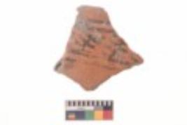 | Description / विवरण | Specimen of black on red ware with black decorative Horizontal and vertical lines and row of arcs with short vertical strokes geometric painting. |