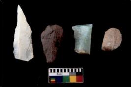 | Description / विवरण | There are n 4 Flake tool; There are multidirectional irregular scar pattern on them. few have blunt edges, Some of them are tapering at one end. |
