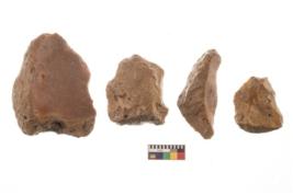 | Description / विवरण | There are n 4 utilized flakes. There are multi directional irregular scar pattern on both dorsal and ventral face of the flakes. Two have tapering at one end and two have sharp edges. |