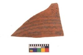 | Description / विवरण | Specimen of black on red ware with black decorative Parallel horizontal lines with wavy lines geometric painting. |