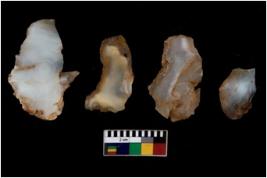 | Description / विवरण | There are n 4 utilized flake cores. There are multi directional irregular scar pattern on them. Three are tapering at one end and one has blunted edge. |