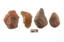 | Description / विवरण | There are n 4 utilized flakes. There are multi directional irregular scar pattern on both dorsal and ventral face of the flakes. One has blunt edge and three have sharp edges. |