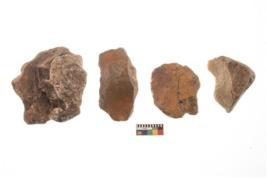 | Description / विवरण | There are n 4 utilized flakes. There are multi directional irregular scar pattern on both dorsal and ventral face of the flakes. Three have tapering at one end and one has blunt edge. |