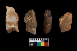 | Description / विवरण | There are n 4 utilized flake cores. Out of them two are made up of Chert and two are made up of Chalcedony. There are multi directional irregular scar pattern on them. One has sharp edge and three are tapering at one end. |