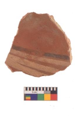 | Description / विवरण | Specimen of black on red ware with black decorative Bichrome ware geometric painting. |