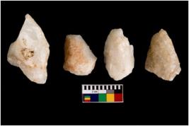 | Description / विवरण | Specimen of fluted cores having several broad fluted marks indicating the detached blades from it. |
