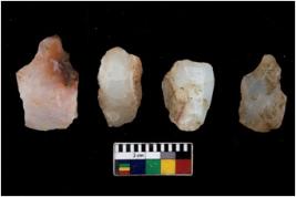 | Description / विवरण | There are n 4 utilized flake cores. There are multi directional irregular scar pattern on them. Two have sharp edges and two have blunted edges. |