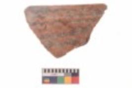 | Description / विवरण | Specimen of black on red ware with black decorative Wavy design geometric painting. |