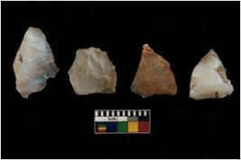| Description / विवरण | There are n 4 utilized flake cores. There are multi directional irregular scar pattern on them. Two have sharp edges and two have blunted edges. |