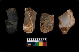 | Description / विवरण | There are n 4 utilized flake cores. Out of them two are made up of Chert and two are made up of Chalcedony. There are multi directional irregular scar pattern on them. One has sharp edge and three are tapering at one end. |