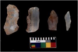 | Description / विवरण | There are n 4 flakes tool; there are large flakes with sides trimmed, Marks of secondary flaking are present on the both the faces. |