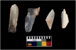 | Description / विवरण | There are n 4 Flake tool; There are multidirectional irregular scar pattern on them. few have blunt edges, Some of them are tapering at one end. |