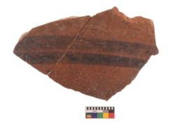 | Description / विवरण | Specimen of black on red ware with black decorative Horizontal parallel lines geometric painting. |