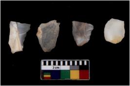 | Description / विवरण | There are n 4 Flake tool; There are multidirectional irregular scar pattern on them. few have blunt edges, Some of them are tapering at one end. |
