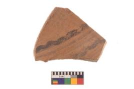 | Description / विवरण | Specimen of black on red ware with black decorative Wavy lines with parallel lines in between geometric painting. |