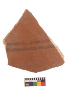 | Description / विवरण | Specimen of black on red ware with black decorative Horizontal parallel lines geometric painting. |