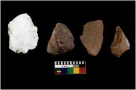 | Description / विवरण | There are n 4 utilized flake cores. Out of them three are made up of Chert and one is made up of Chalcedony. There are multi directional irregular scar pattern on them. One has sharp edge and three have blunted edges. |