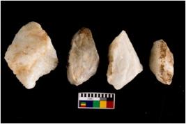 | Description / विवरण | Specimen of fluted cores having several broad fluted marks indicating the detached blades from it. |
