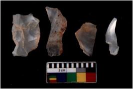 | Description / विवरण | There are n 4 Flake tool; There are multidirectional irregular scar pattern on them. few have blunt edges, Some of them are tapering at one end. |