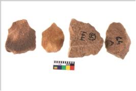 | Description / विवरण | There are n 4 utilized flake cores. There are multidirectional irregular scar pattern on both dorsal and ventral face of the flake cores. One has sharp edges and three have blunted edges. |