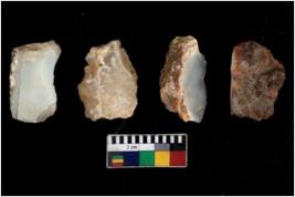 | Description / विवरण | There are n 4 utilized flake cores. There are multi directional irregular scar pattern on them. One has sharp edge and three have round edges. |