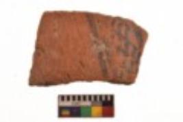 | Description / विवरण | Specimen of black on red ware with black decorative Lattice design geometric painting. |