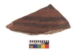 | Description / विवरण | Specimen of black on red ware with black decorative Parallel lines geometric painting. |