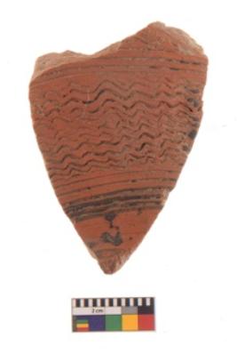 | Description / विवरण | Specimen of black on red ware with black decorative Wavy lines with concentric circles geometric painting. |