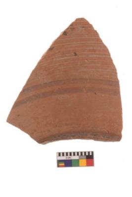 | Description / विवरण | Specimen of black on red ware with black decorative Parallel lines geometric painting. |