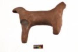 | Description / विवरण | Specimen of bull figurine of red colour shaped by hand and made with fine clay, it is well fired and smooth in texture. Head and two legs are missing and tail is partially broken. |