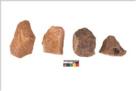 | Description / विवरण | There are n 4 utilized flake cores. There are multidirectional irregular scar pattern on both dorsal and ventral face of the flake cores. One has sharp edges and three have blunted edges. |