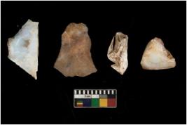 | Description / विवरण | There are n 4 utilized flake cores. Out of them one is made up of Chert and three are made up of Chalcedony. There are multi directional irregular scar pattern on them. One has sharp edge and three have round edges. |
