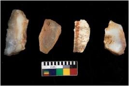 | Description / विवरण | There are n 4 utilized flake cores. Out of them two are made up of Chert and two are made up of Chalcedony. There are multi directional irregular scar pattern on them. One has sharp edge and three are tapering at one end. |