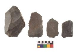 | Description / विवरण | There are n 4 utilized flakes. There are multi directional irregular scar pattern on both dorsal and ventral face of the flakes. Three have sharp at one end and one has tapering edge. |