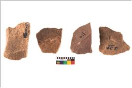 | Description / विवरण | Specimen of flake tools with prominent flaking marks. They are made up of a short flakes with sides trimmed. |