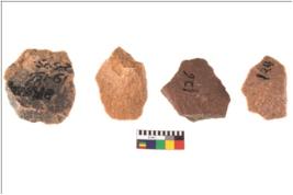 | Description / विवरण | There are n 4 utilized flake cores. There are multidirectional irregular scar pattern on both dorsal and ventral face of the flake cores. One has sharp edges and three have blunted edges. |